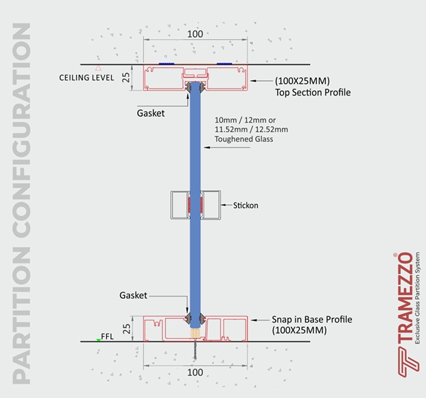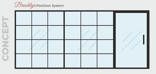 The TRAMEZZO 100×25 Brooklyn System is a single-glazed glass partition solution designed for modern office environments where standard performance and distinctive design are required. Based on a Brooklyn Partition System with 100mm × 25mm glazing, it combines reliable partition performance with the visual character of Brooklyn-style grid detailing.