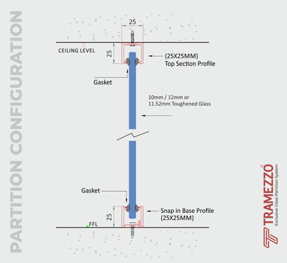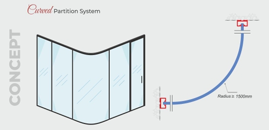 The TRAMEZZO 25×25 Curved System is designed to bring fluidity and softness to modern interior spaces. Based on a Curved Partition System with a 25mm × 25mm glazing seal and bead, it allows smooth curved glass installations while maintaining structural integrity and visual elegance.