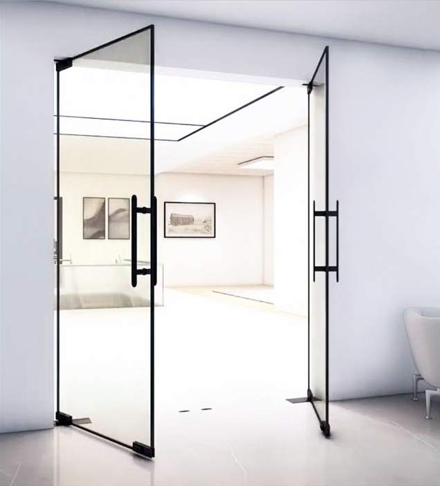 The TRAMEZZO Floor Spring Door is a frameless glass door solution designed for smooth operation and durability in high-traffic commercial environments. Fitted with a concealed floor spring mechanism, it ensures controlled opening and closing while maintaining a clean and minimal appearance.