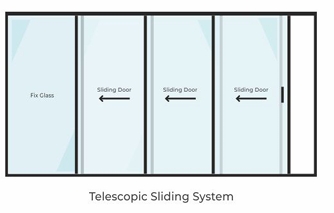 The TRAMEZZO Telescopic Sliding System is designed to provide maximum opening within limited wall space. Using a telescopic sliding mechanism, multiple panels slide neatly to one side, making this system both space-efficient and visually appealing.